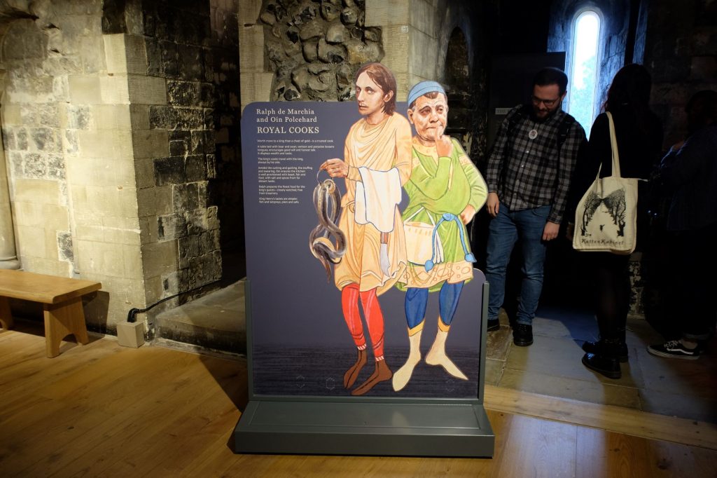 Walls were painted in elaborate patterns. Furniture was colourful and sometimes gilded. Doors featured fancy ironwork scrolls. Colourful banners and tapestries hung on walls. What you’ll see in the royal palace reflects this Norman taste for decoration. It shows the castle’s high status. Every element has been carefully researched and expertly crafted. This is to provide as authentic an experience as possible.’