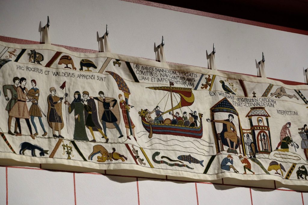 The Great Chamber is home to the Norwich Tapestry, and 18-metre embroidery in the style of the Bayeux Tapestry which tells the story of two East Anglian rebellions against Norman rule. It has taken thousands of hours across 8 years to complete.