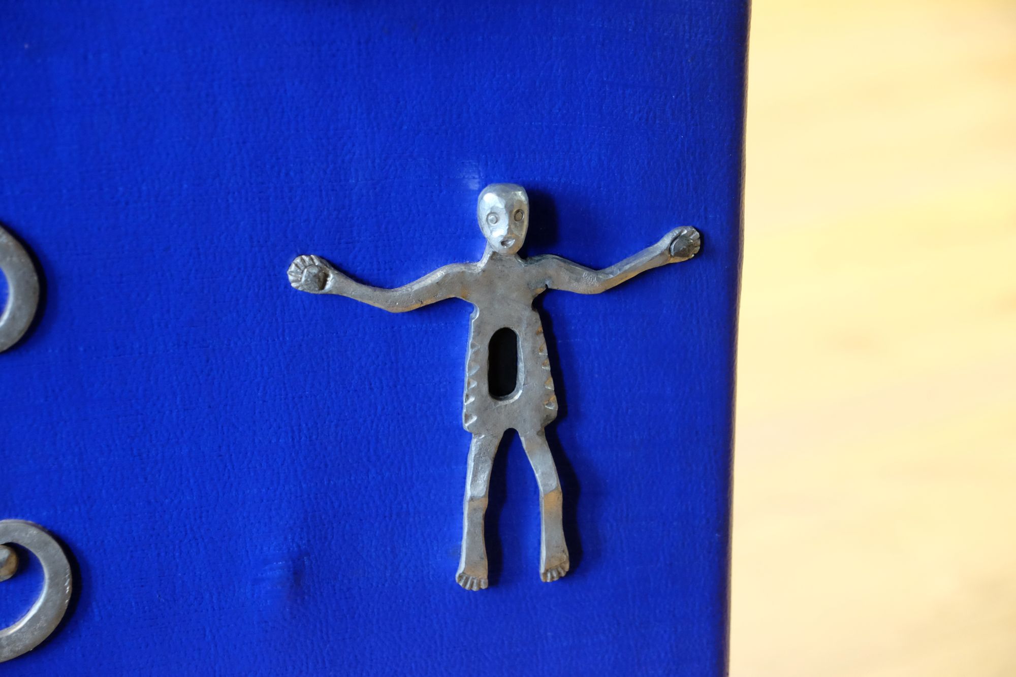The door itself is enormous, and provides a first hint of what is to come. The bright blue colour of the leather covering of the door is initially surprising,